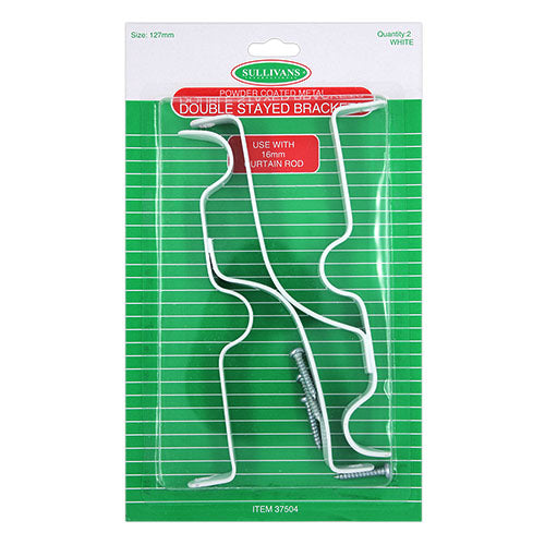 Sullivans Double Stay Brackets are strong and durable and should be used to support the Sullivans 16mm Curtain Rods. Holds 2 Rods.